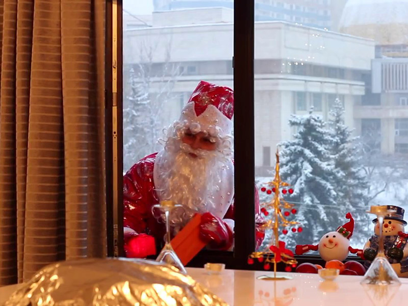 Дед Мороз (альпинист) спускается с крыши в окно Вашей квартиры, стучит в окно и с праздничным настроением говорит: